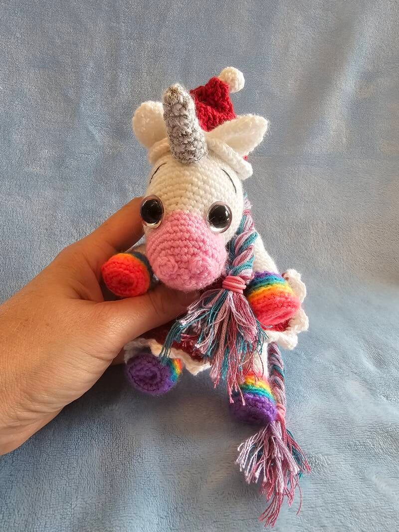 🧶 Häkelanleitung – Weihnachts-Einhorn 🎄🦄 mit Kleid & Weihnachtsmannmütze 🎅